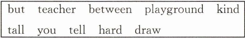 1.tell 2.but 3.between 4.teachers 5.kind 6.hard 7.drawing 8.playground 9.tall 10.yourself
