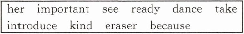 1.because 2.eraser 3.see 4.hers 5.ready 6.kind 7.introduces 8.important 9.dancing 10.take