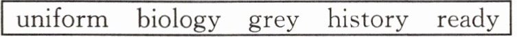 1.T-shirt 2.textbook 3.jacket 4.eraser 5.geography 6.forget 7.Biology 8.uniform 9.ready 10.grey 11.history