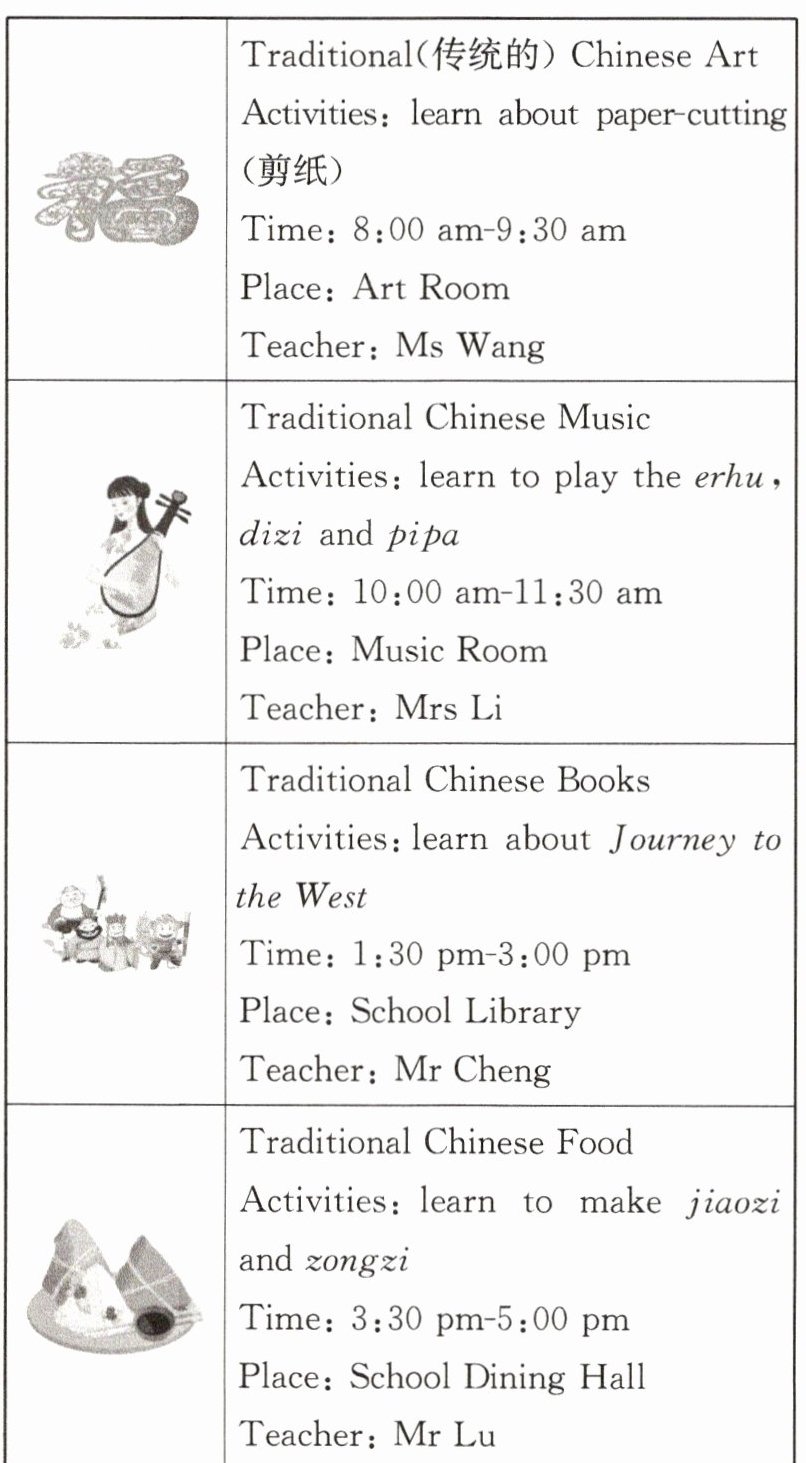 )4. Who teaches Traditional Chinese Books?A. Ms Wang.