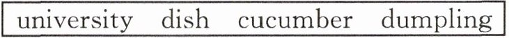 1.dumplings 2.dishes 3.cucumbers 4.universities