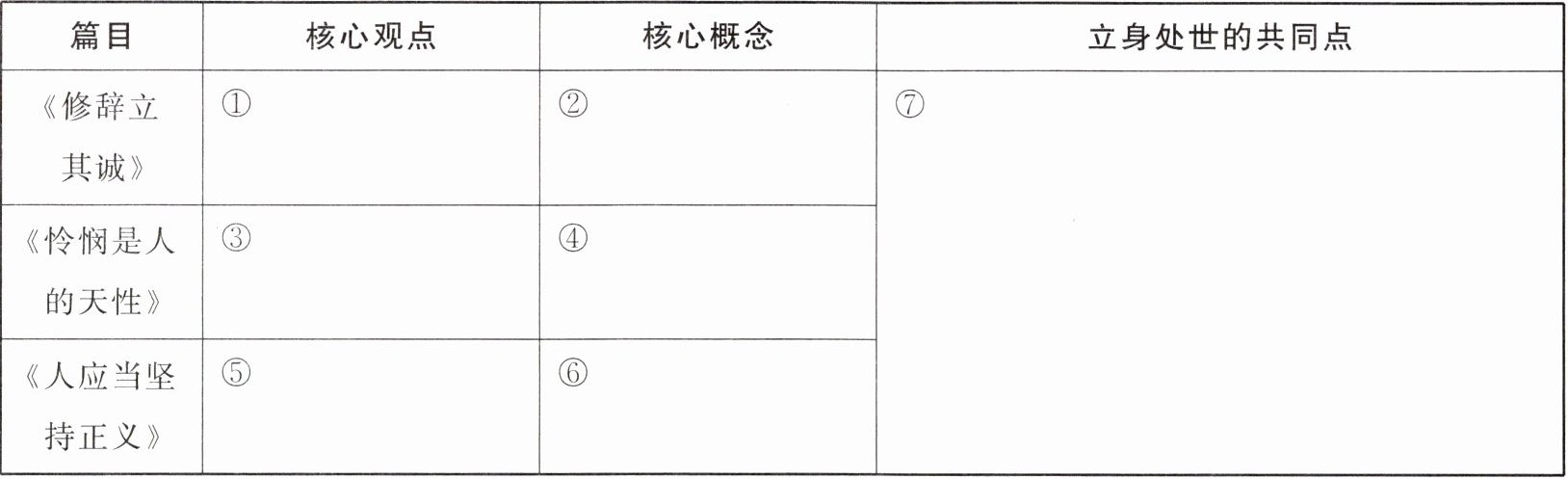 3. 第 4—5 课三篇文章都涉及立身处世的原则问题。请结合课文内容,完成下表。