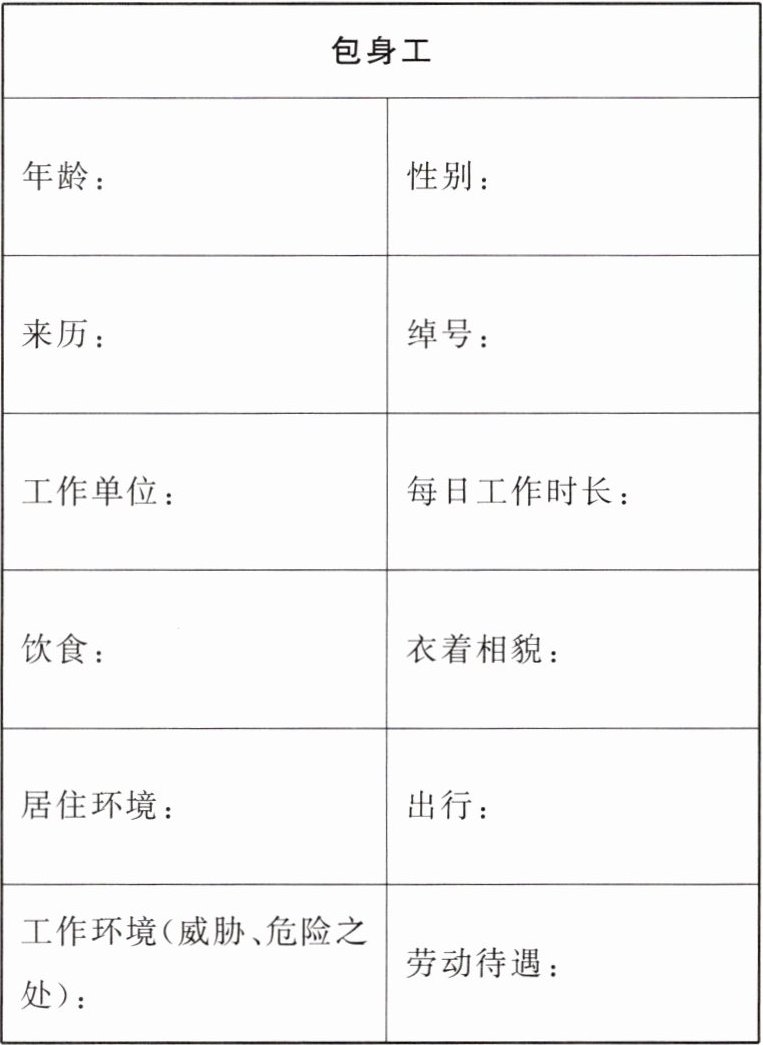 1. 通读全文并梳理“包身工”的关键信息,完成下面的表格。
