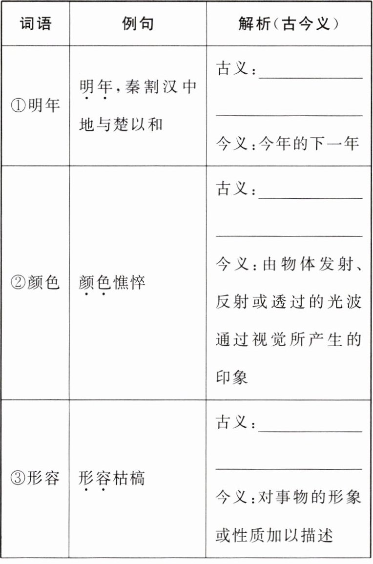 2.①第二年。这里指楚怀王十八年(前311) ②脸色 ③外貌,模样 ④委婉得体