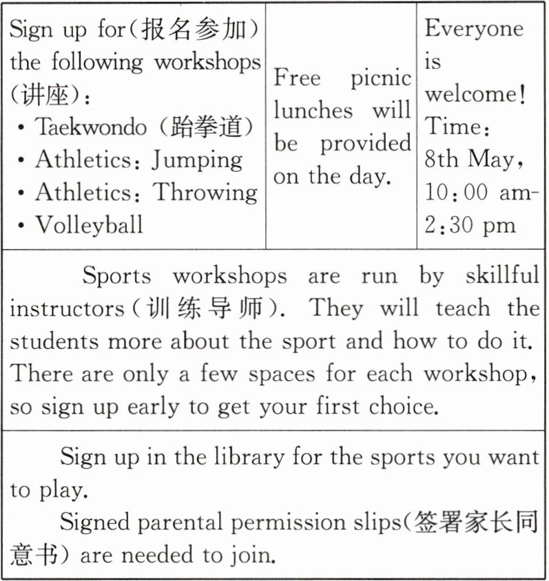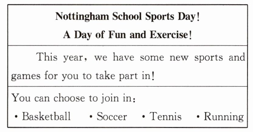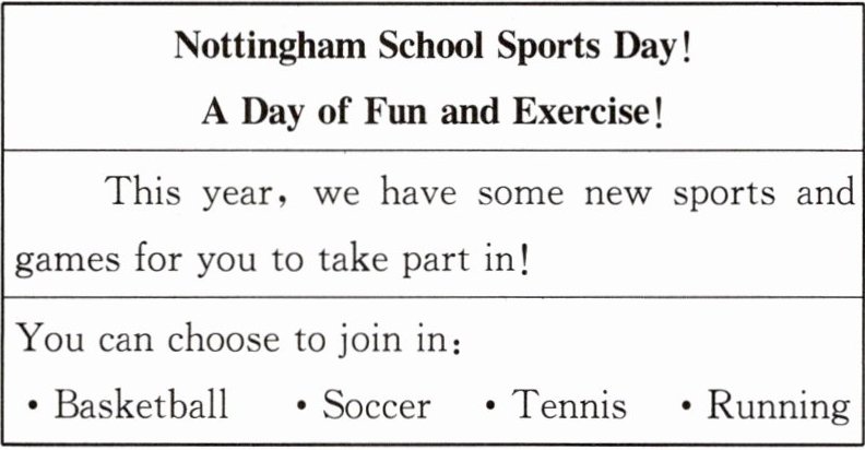 )4.What do students have to do to take part in the Sports Day?A.Fill in a paper form.