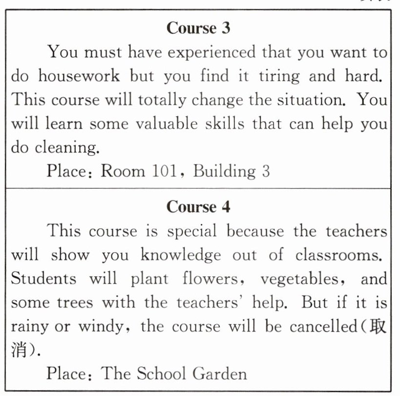 )4.Which course may be influenced(被影响) by the weather?A. Course 2. B. Course 3. C. Course 4.