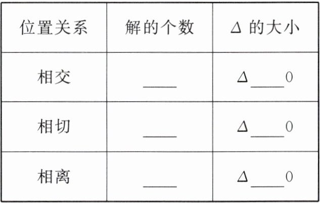 直线 $ y = kx + m $ 与椭圆 $ \frac{x^2}{a^2}+\frac{y^2}{b^2}=1(a>b>0) $ 的位置关系的判断方法: