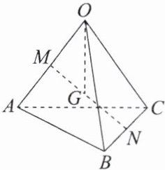 例 1 如图,在空间四边形 $OABC$ 中,已知 $\angle AOB=\angle BOC=\angle AOC$,且 $OA = OB = OC$,$M$,$N$ 分别是 $OA$,$BC$ 的中点,$G$ 是 $MN$ 的中点. 求证:$OG\perp BC$.