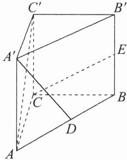 因为$\overrightarrow{CE}=\overrightarrow{CB}+\frac{1}{2}\overrightarrow{BB'}=\boldsymbol{b}+\frac{1}{2}\boldsymbol{c},\overrightarrow{A'D}=\overrightarrow{A'A}+\frac{1}{2}\overrightarrow{AB}=\overrightarrow{A'A}+\frac{1}{2}(\overrightarrow{CB}-\overrightarrow{CA})=-\boldsymbol{c}+\frac{1}{2}\boldsymbol{b}-\frac{1}{2}\boldsymbol{a}$,