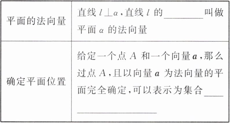 (2)方向向量 $\{\boldsymbol{P}\mid\boldsymbol{a}·\overrightarrow{AP}=0\}$