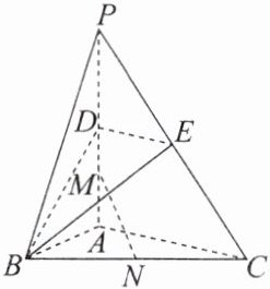 例1 如图,在三棱锥$P - ABC$中,$PA\perp$底面$ABC$,$\angle BAC = 90^{\circ}$,点$D$,$E$,$N$分别为棱$PA$,$PC$,$BC$的中点,$M$是线段$AD$的中点,$PA = AC = 4$,$AB = 2$.试证明:$MN//$平面$BDE$.