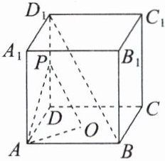设正方体的棱长为$1$,则$O\left(\frac{1}{2}, \frac{1}{2}, 0\right)$,$P\left(0, 0, \frac{1}{2}\right)$,$A(1, 0, 0)$,$B(1, 1, 0)$,$D_1(0, 0, 1)$,设$Q(0, 1, m)(0 \leq m \leq 1)$。