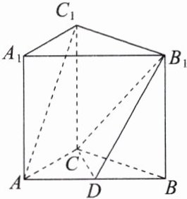 由①②可得$x = \frac{3}{2}$,$y = 2$,即$D$为$AB$的中点。故在线段$AB$上存在点$D$,使得$AC_1 //$平面$CDB_1$,此时$D$是线段$AB$的中点。