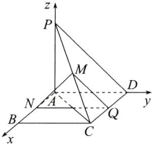 例2 如图所示,四边形$ABCD$为矩形,$PA\perp$平面$ABCD$,$PA = AD$,$M$,$N$,$Q$分别是$PC$,$AB$,$CD$的中点.