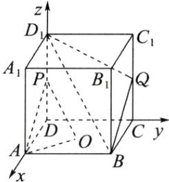 解:以$D$为原点,$DA$,$DC$,$DD_1$所在直线分别为$x$轴、$y$轴、$z$轴,建立如图所示的空间直角坐标系。