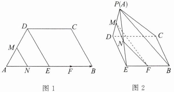 如图1,在等腰梯形$ABCD$中,点$E$在$AB$上,$AE = BE = BC = CD = 4$,$M$,$N$分别是$AD$,$AE$的中点,$\overrightarrow{EF}=\lambda\overrightarrow{EB}(0\leqslant\lambda\leqslant1)$,将$\triangle ADE$沿着$DE$折起,使得点$A$到达点$P$的位置,平面$PDE\perp$平面$BCDE$,如图2.