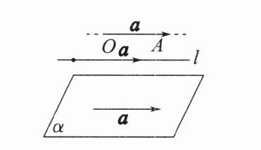 (1)如图,如果表示向量 $a$ 的有向线段 $\overrightarrow{OA}$ 所在的直线 $OA$ 与直线 $l$______或重合,那么称向量 $a$ 平行于直线 $l$. 如果直线 $OA$______平面 $\alpha$ 或在平面 $\alpha$ 内,那么称向量 $a$ 平行于平面 $\alpha$. 平行于同一个平面的向量,叫做______.