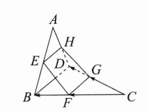 例1 证明:因为$E$,$H$分别是$AB$,$AD$的中点,所以$\overrightarrow{AE} = \frac{1}{2}\overrightarrow{AB}$,$\overrightarrow{AH} = \frac{1}{2}\overrightarrow{AD}$,所以$\overrightarrow{EH} = \overrightarrow{AH} - \overrightarrow{AE} = \frac{1}{2}\overrightarrow{AD} - \frac{1}{2}\overrightarrow{AB} = \frac{1}{2}\overrightarrow{BD} = \frac{1}{2}(\overrightarrow{CD} - \overrightarrow{CB}) = \frac{1}{2}(\frac{3}{2}\overrightarrow{CG} - \frac{3}{2}\overrightarrow{CF}) = \frac{3}{4}(\overrightarrow{CG} - \overrightarrow{CF}) = \frac{3}{4}\overrightarrow{FG}$,所以$EH // FG$,且$|\overrightarrow{EH}| = \frac{3}{4}|\overrightarrow{FG}| \neq |\overrightarrow{FG}|$。又点$F$,$G$不在直线$EH$上,所以四边形$EFGH$是梯形。