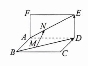例2 如图,已知矩形 $ABCD$ 所在的平面和矩形 $ADEF$ 所在的平面互相垂直,点 $M$,$N$ 分别在对角线 $BD$,$AE$ 上,且 $BM = \frac{1}{3}BD$,$AN = \frac{1}{3}AE$. 求证:向量 $\overrightarrow{MN}$,$\overrightarrow{CD}$,$\overrightarrow{DE}$ 共面.