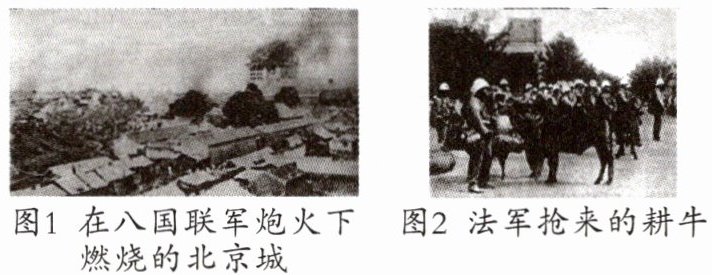 材料一 1900年9月,接任八国联军统帅的瓦德西后来在给德皇的报告中供认,“联军占领北京之后,曾特许军队公开抢劫三日,其后更继以私人抢劫”,“所有中国此次所受毁损及抢劫之损失,其详数将永远不能查出”。