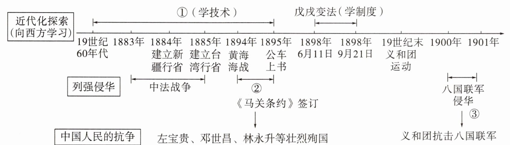 《辛丑条约》签订(③);洋务运动(①);甲午中日战争(②)
