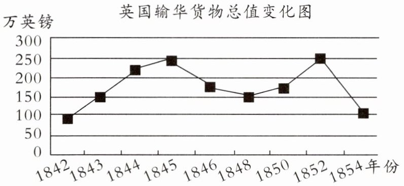 6. 跨学科·数学 如下图为1842—1854年英国输华货物总值变化图,该图所示现象(