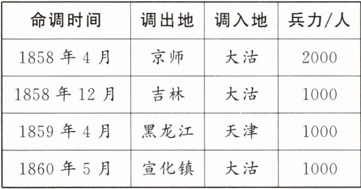7. 图表分析 阅读下列清军兵力调动表,分析与此相关的历史事件是(