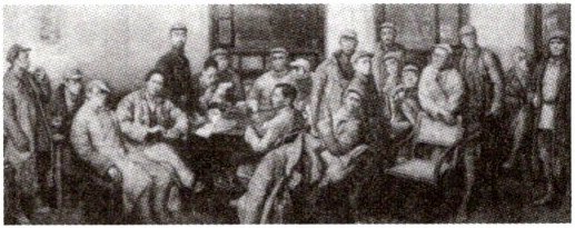 1. 跨学科·美术 下图为《美术经典中的党史》绘画作品。该图以人民的视角,描绘了中国共产党在长征途中召开的“生死攸关的转折点”的会议。该会议(