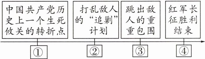 3. 在“重走长征路·忆峥嵘岁月”的研学活动中,小历同学制作了以下路线图(部分)。下列与图中①②③④处对应正确的是(