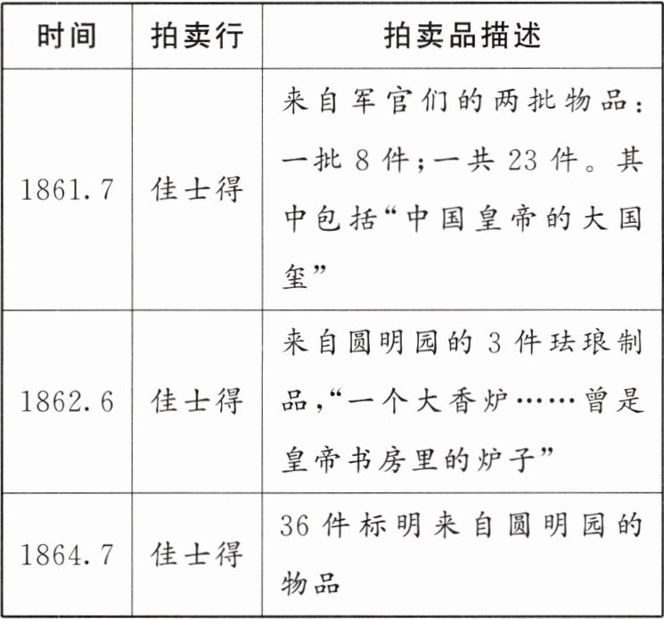 (2)材料二中的拍卖品是在哪场战争中被列强劫掠的?材料二中材料对于研究中国近代历史有何价值?