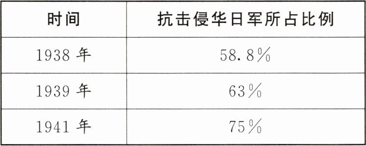 (2)敌后战场抗击侵华日军人数(或比例)不断增高。敌后战场逐渐成为中国人民抗日战争的主战场。