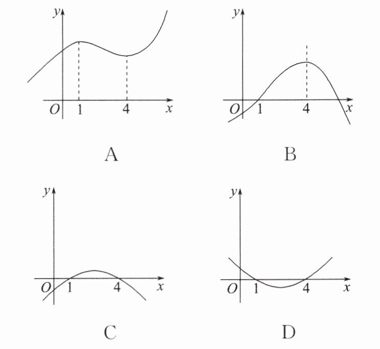 1.C 解析:因为f(x)在(-∞,1),(4,+∞)上单调递减,在(1,4)上单调递增,所以当x<1或x>4时,f'(x)<0,当1<x<4时,f'(x)>0.故选C.