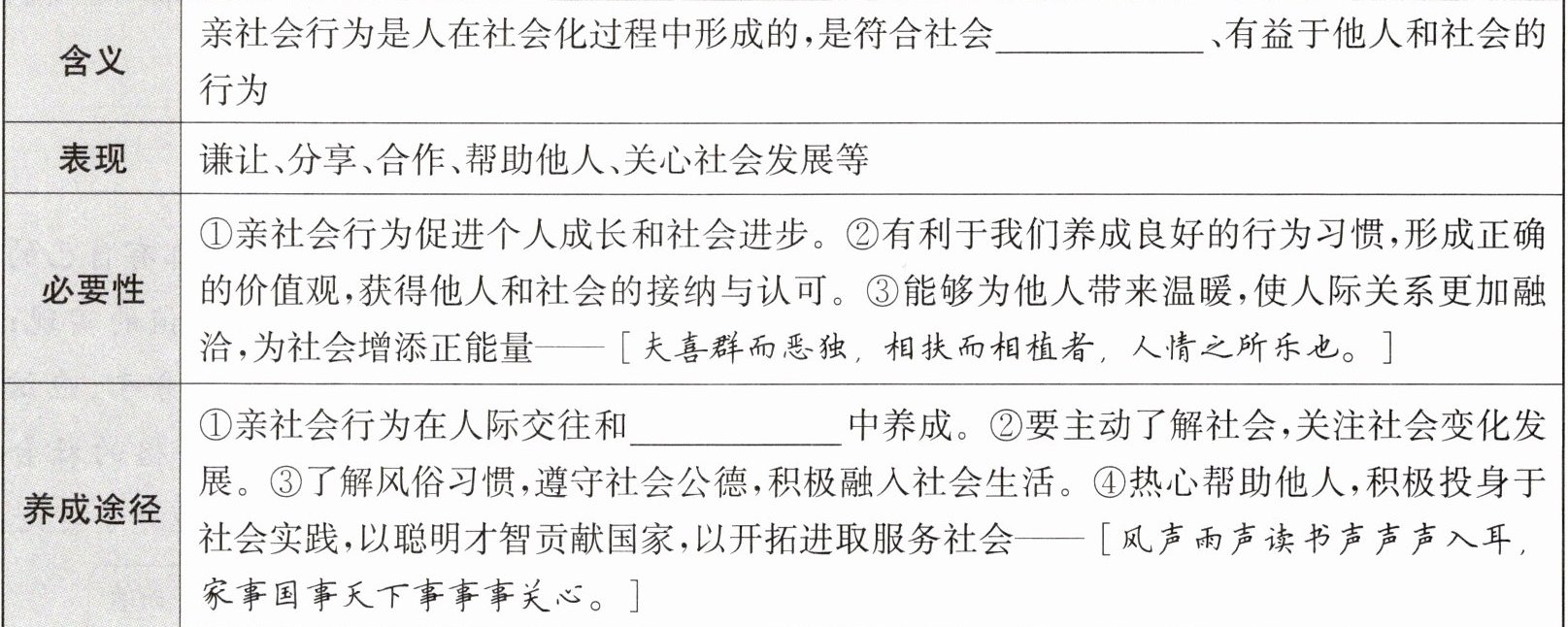 知识点 亲社会行为的含义、表现、必要性及养成途径
