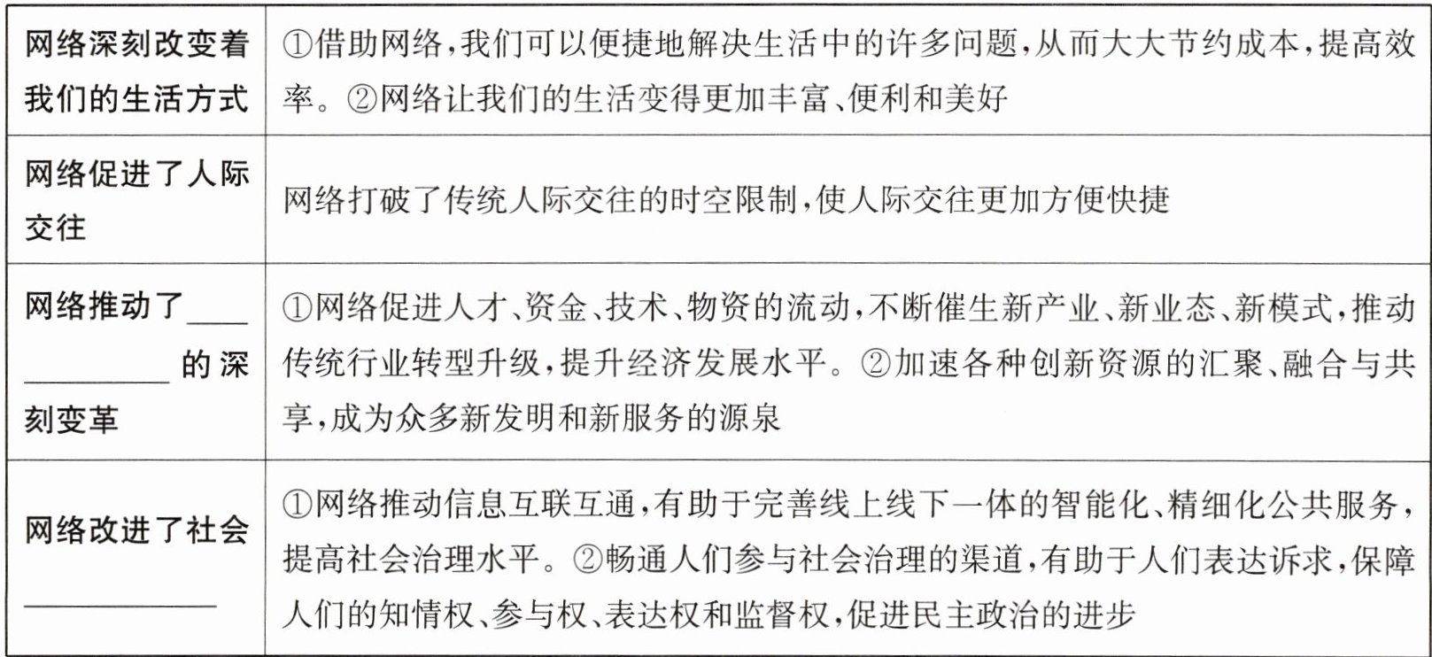 )①网络改变着我们的生活方式 ②网络可以满足我们的所有需求 ③网络促进了人际交往