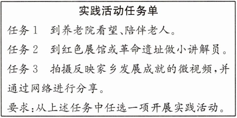 5.[广西改编]生命的意义不仅在于感悟,更在于践行。为此,老师布置了课后实践活动任务(见下图)。