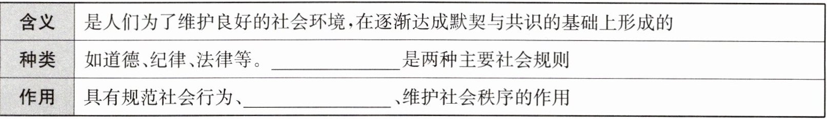 (2)社会生活需要秩序。社会正常运行需要每个社会成员各司其职、密切合作,有序利用社会资源,积极承担社会责任。只有这样,我们才能拥有安全、有序、和谐的社会环境。