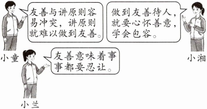 同学们对如何友善待人有着不同的观点。