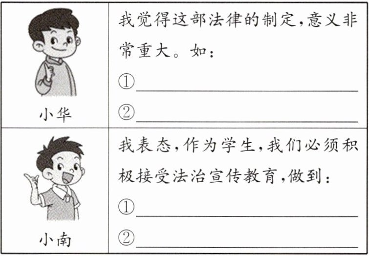 围绕上述材料,小华和小南发表了如下观点。请你将他们的观点补充完整。(8分)
