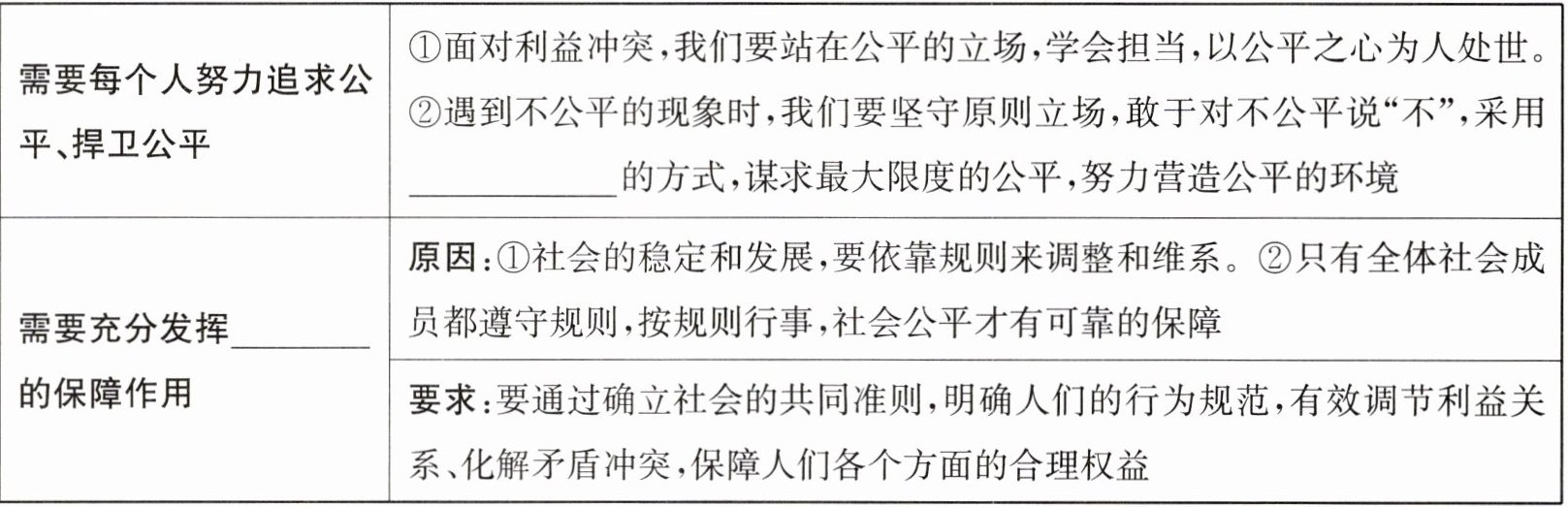 (1)原因:①公平的重要性。(见上)②人们渴望公平的阳光普照,但公平的社会不会自然而然地形成。③实现公平,离不开每个人的积极参与和不懈努力。