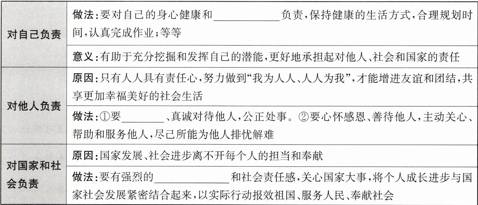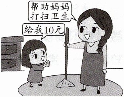 D【点拨】漫画中,妈妈让女儿打扫卫生,女儿要10元钱作为回报,说明小女孩没有正确认识责任。责任是一个人分内应该做的事情,给自己的家打扫卫生是分内应该
