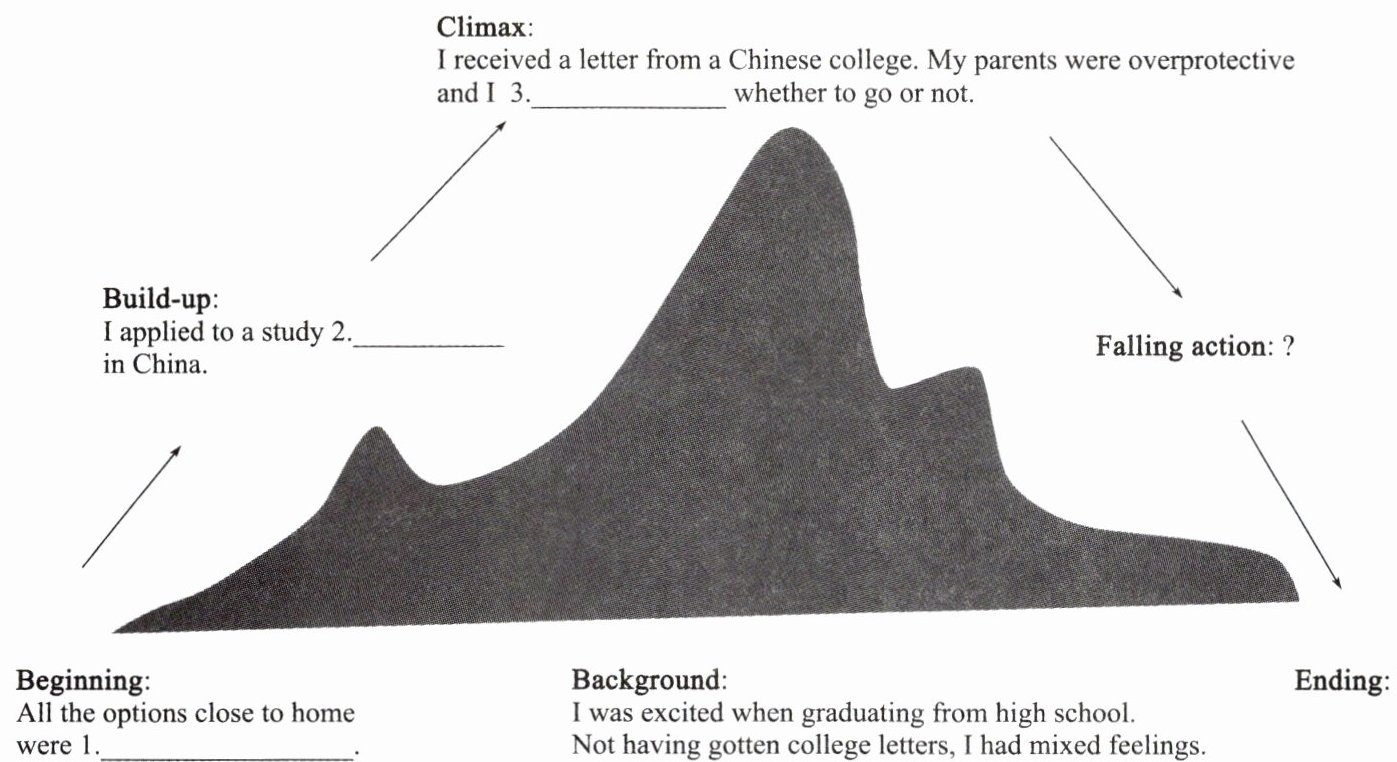 任务四:根据材料内容和任务三中构思的故事发展情节续写两段,使之构成一篇完整的短文。