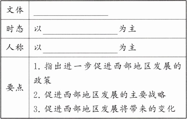 假如你是某报社记者,得知中国将进一步促进西部地区发展,准备写一篇文章介绍有关情况。请根据以下提供的信息写一篇英文稿进行简要报道。要点如下: