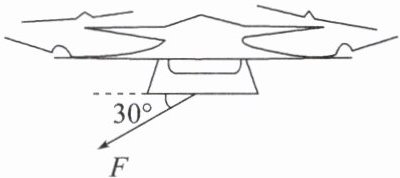 3. (2025·广东卷)(多选)如图所示,无人机在空中作业时,受到一个方向不变、大小随时间变化的拉力$F$。无人机经飞控系统实时调控,在拉力、空气的作用力和重力作用下沿水平方向做匀速直线运动。已知拉力方向与水平面成$30^{\circ}$角,其大小$F$随时间$t$的变化关系为$F = F_0 - kt$($F ≠ 0$,$F_0$、$k$均为大于$0$的常量),无人机的质量为$m$,重力加速度为$g$。关于该无人机在$0$到$T$时间段($T$是满足$F > 0$的任一时刻),下列说法正确的有( )