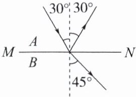用 $ MN $ 表示 $ A $、$ B $ 两介质的分界面,如图所示是射向分界面的一束光线发生反射和折射的光路图,则两介质相比,$ A $ 是____介质,$ B $ 是____介质。