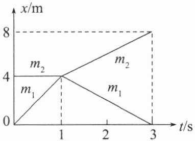 2. 质量为 $ m_1 $ 和 $ m_2 $ 的两个物体在光滑水平面上正碰,其位置坐标 $ x $ 随时间 $ t $ 变化的图像如图所示。下列说法正确的是( )