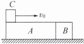 解析:C在A上滑动时,选A、B、C作为一个系统,其总动量守恒,有$m_{C}v_{0} = m_{C}v_{C}^{'} + (m_{A} + m_{B})v_{A}^{'}$,C滑到B上后A做匀速运动,再选B、C作为一个系统,其总动量也守恒,则$m_{C}v_{C}^{'} + m_{B}v_{A}^{'} = (m_{B} + m_{C})v_{BC}$,联立两式得$v_{A}^{'} = 2.1m/s$,$v_{C}^{'} = 4m/s$。