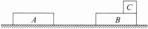 2. (2025·浙江卷1月选考)如图所示,光滑水平地面上放置完全相同的两长板$A$和$B$,滑块$C$(可视为质点)置于$B$的右端,三者质量均为$1kg$,$A$以$4m/s$的速度向右运动,$B$和$C$一起以$2m/s$的速度向左运动,$A$和$B$发生碰撞后粘在一起不再分开。已知$A$和$B$的长度均为$0.75m$,$C$与$A$、$B$间的动摩擦因数均为$0.5$,则( )