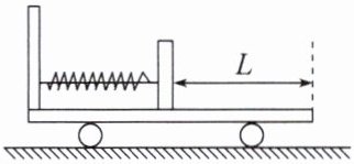 活动 2 质量为 M 的小车置于光滑的水平面上,左端固定一根水平轻质弹簧,质量为 m 的光滑物块放在小车上,压缩弹簧并用细线连接物块和小车左端,开始时小车与物块都处于静止状态,此时物块与小车右端相距 L,如图所示。某刻突然烧断细线,请回答下列问题。(忽略空气阻力,物块可视为质点)