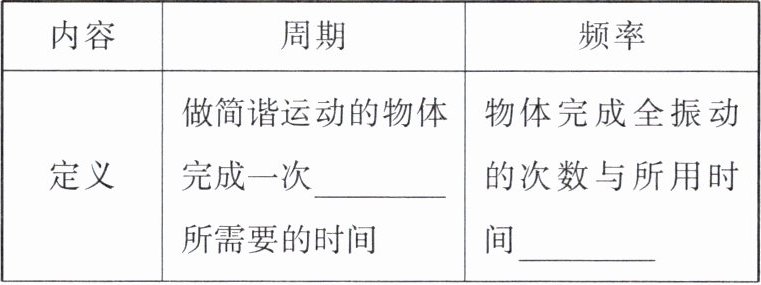 2.全振动 之比 秒(s) 赫兹(Hz) 振动快慢 $\frac{1}{T}$