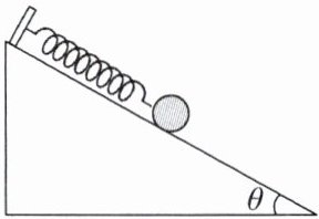 4. 如图所示,倾角为 $ \theta $ 的光滑斜面上的小球与一端固定的轻质弹簧相连。现将小球沿斜面下拉一段距离,然后松开,空气阻力可忽略不计。下列说法正确的是( )